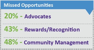 A study conducted by ComBlu on the State of Online Communities in 2011 scores brands based upon their use of best practices in their communities. Over half of the brands which were considered "high scorers" incorporated the use of an advocacy program in their community! According to this same study, despite all of the obvious benefits to developing an advocacy program, at least 20% of brands are missing out!